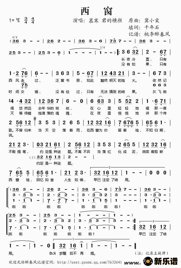 《西窗》简谱 慕寒-桃李醉春风制谱