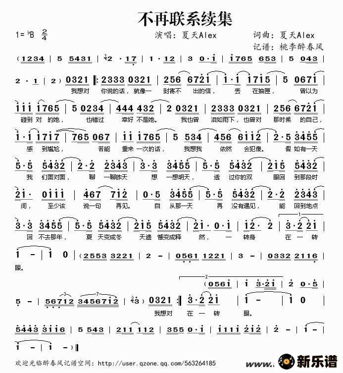 夏天Alex演唱的不再联系续集歌词,不再联系续集简谱.