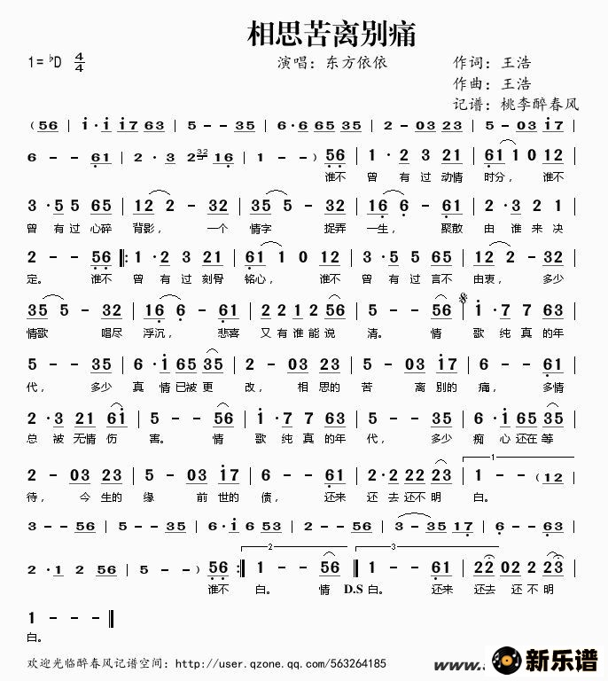 《相思苦离别痛》简谱 东方依依-桃李醉春风制谱
