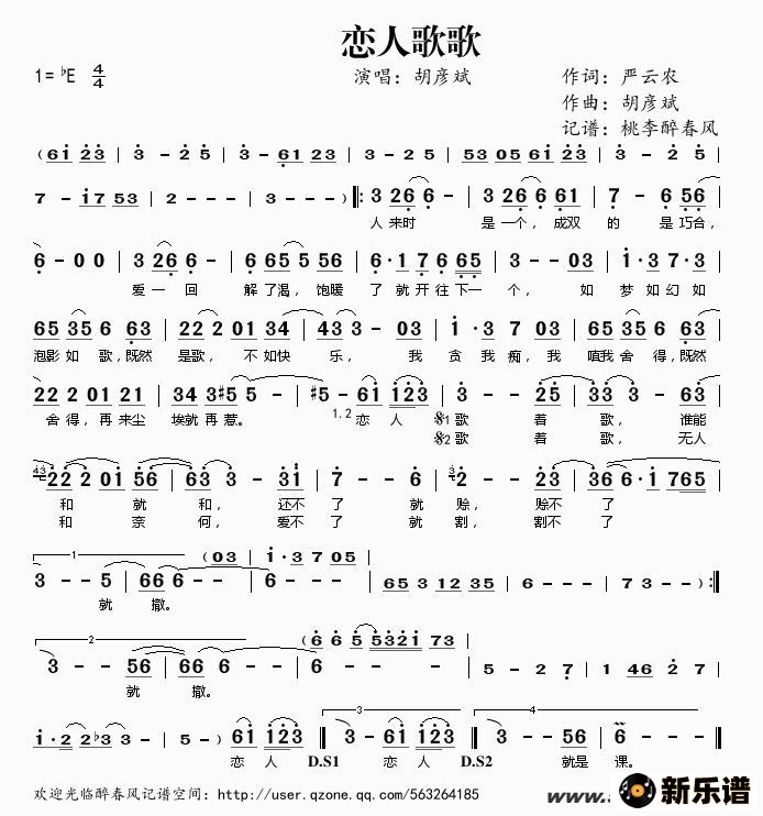 《恋人歌歌》简谱 胡彦斌-桃李醉春风制谱