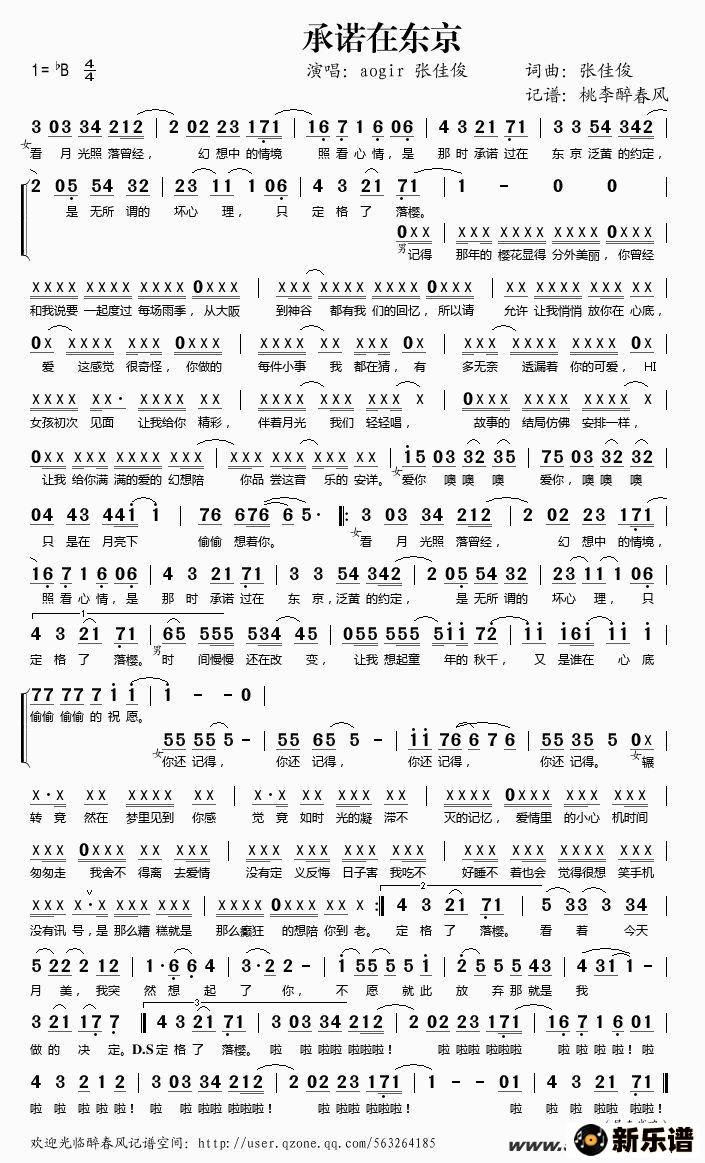 《承诺在东京》简谱 aogir、张佳俊-桃李醉春风制谱