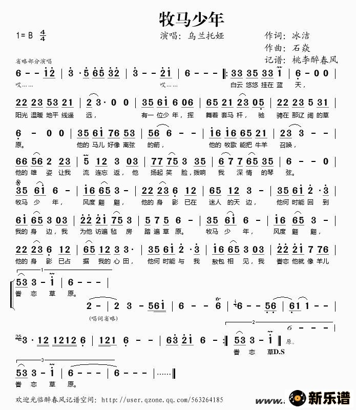 《牧马少年》简谱 乌兰托娅-桃李醉春风制谱