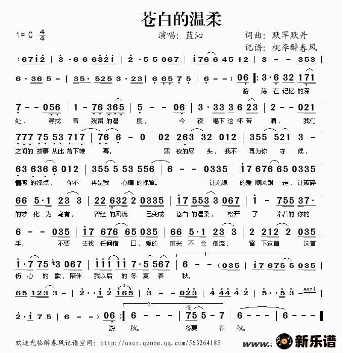 《苍白的温柔》简谱 蓝沁-桃李醉春风制谱