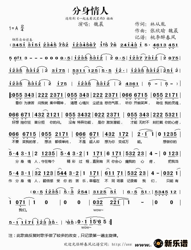 《分身情人》简谱 魏晨-桃李醉春风制谱