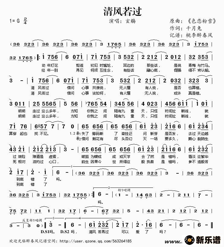 玄觞演唱的清风若过歌词,清风若过简谱.