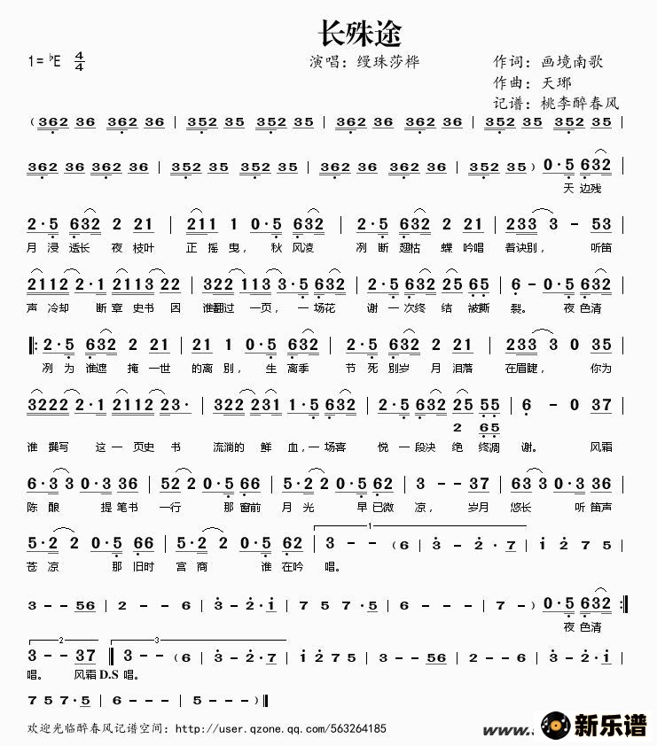 《长殊途》简谱 缦珠莎桦-桃李醉春风制谱