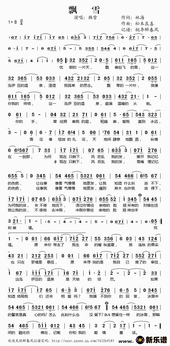 《飘雪》简谱 韩雪-桃李醉春风制谱