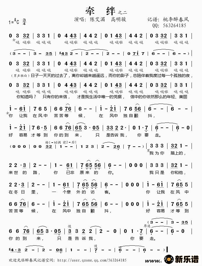 《牵绊》简谱 陈艾湄/高明骏-桃李醉春风制谱