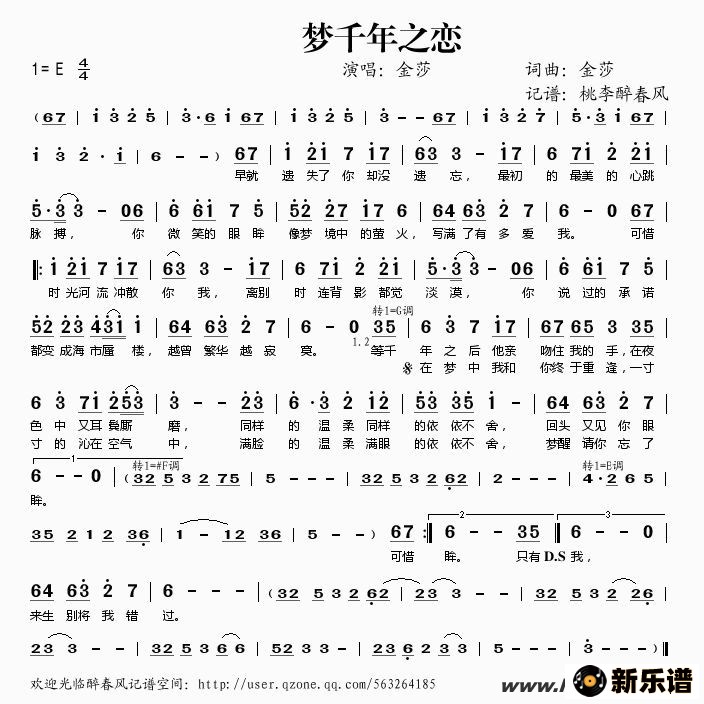 《梦千年之恋》简谱 金莎-桃李醉春风制谱