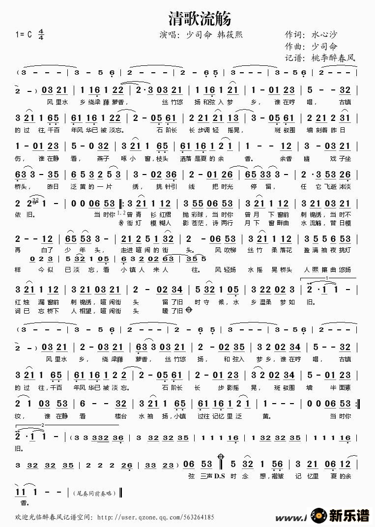 少司命、韩筱熙演唱的清歌流觞歌词,清歌流觞简谱.