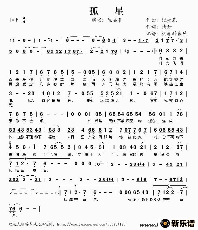 《孤星》简谱 陈启泰-桃李醉春风制谱