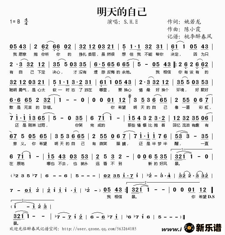 《明天的自己》简谱 S.H.E-桃李醉春风制谱