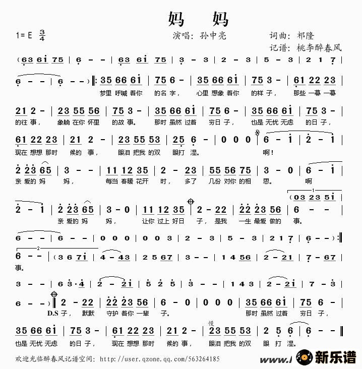 《妈妈》简谱 孙中亮-桃李醉春风制谱