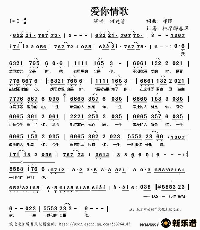 《爱你情歌》简谱 何建清-桃李醉春风制谱