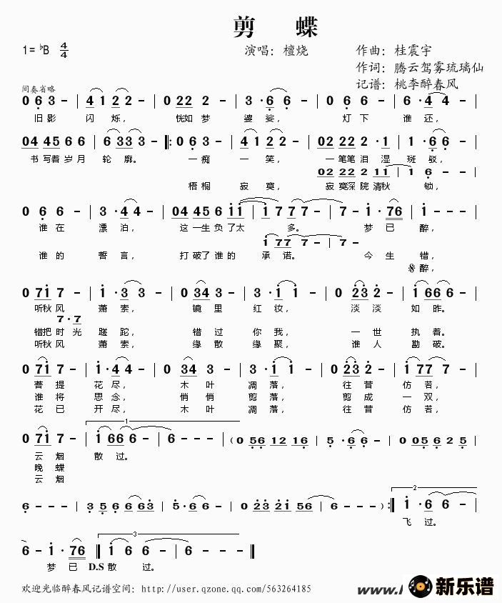 檀烧演唱的剪蝶歌词,剪蝶简谱.