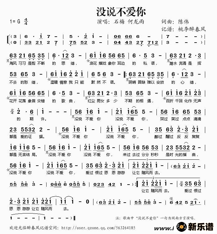 石梅 何龙雨演唱的没说不爱你歌词,没说不爱你简谱.
