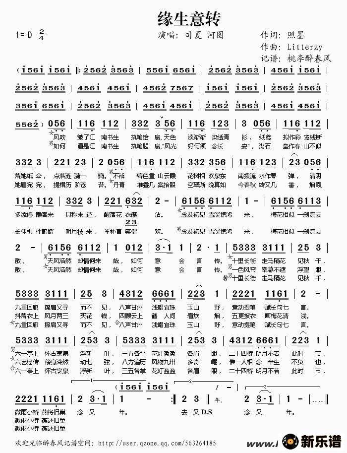 《缘生意转》简谱 河图 司夏-桃李醉春风制谱