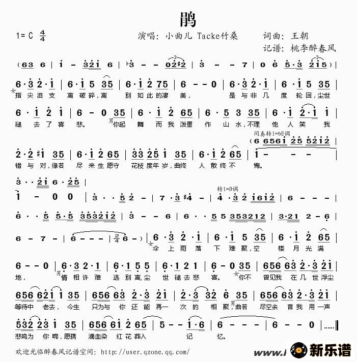 《鹃》简谱 小曲儿/Tacke竹桑-桃李醉春风制谱