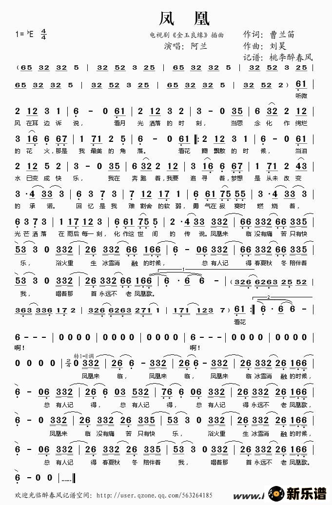 《凤凰(电视剧《金玉良缘》插曲)》简谱 阿兰-桃李醉春风制谱