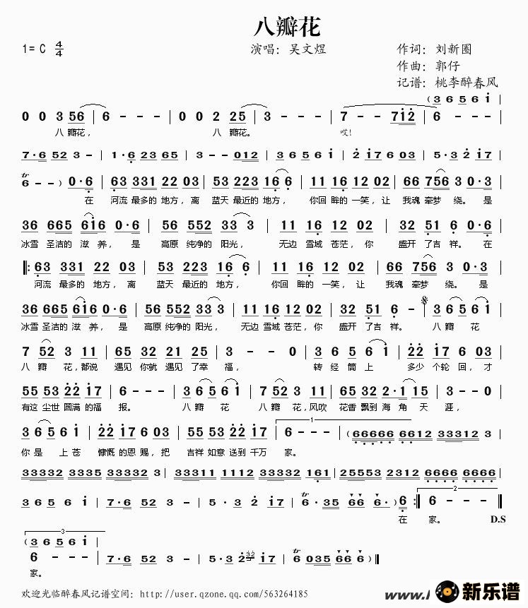 吴文煜演唱的八瓣花歌词,八瓣花简谱.