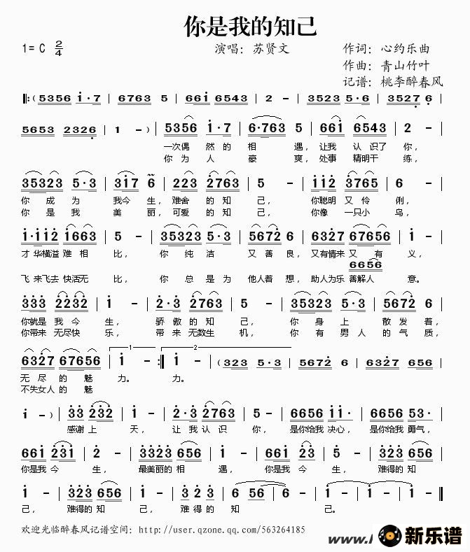 《你是我的知己》简谱 苏贤文-桃李醉春风制谱