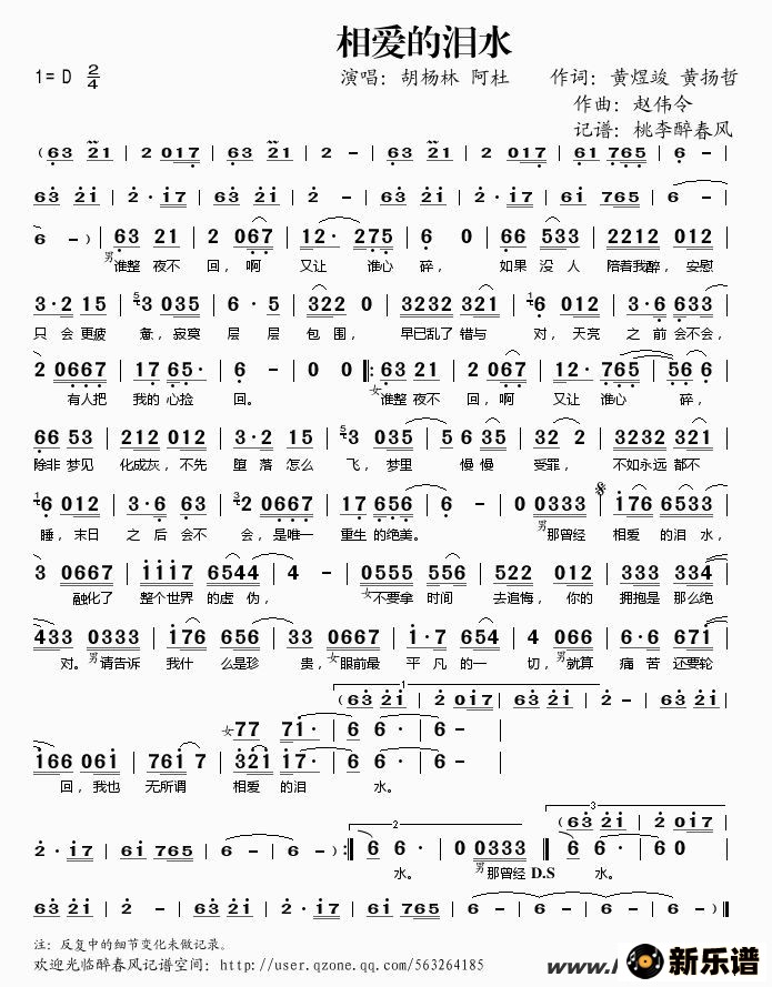 《相爱的泪水》简谱 胡杨林/阿杜-桃李醉春风制谱