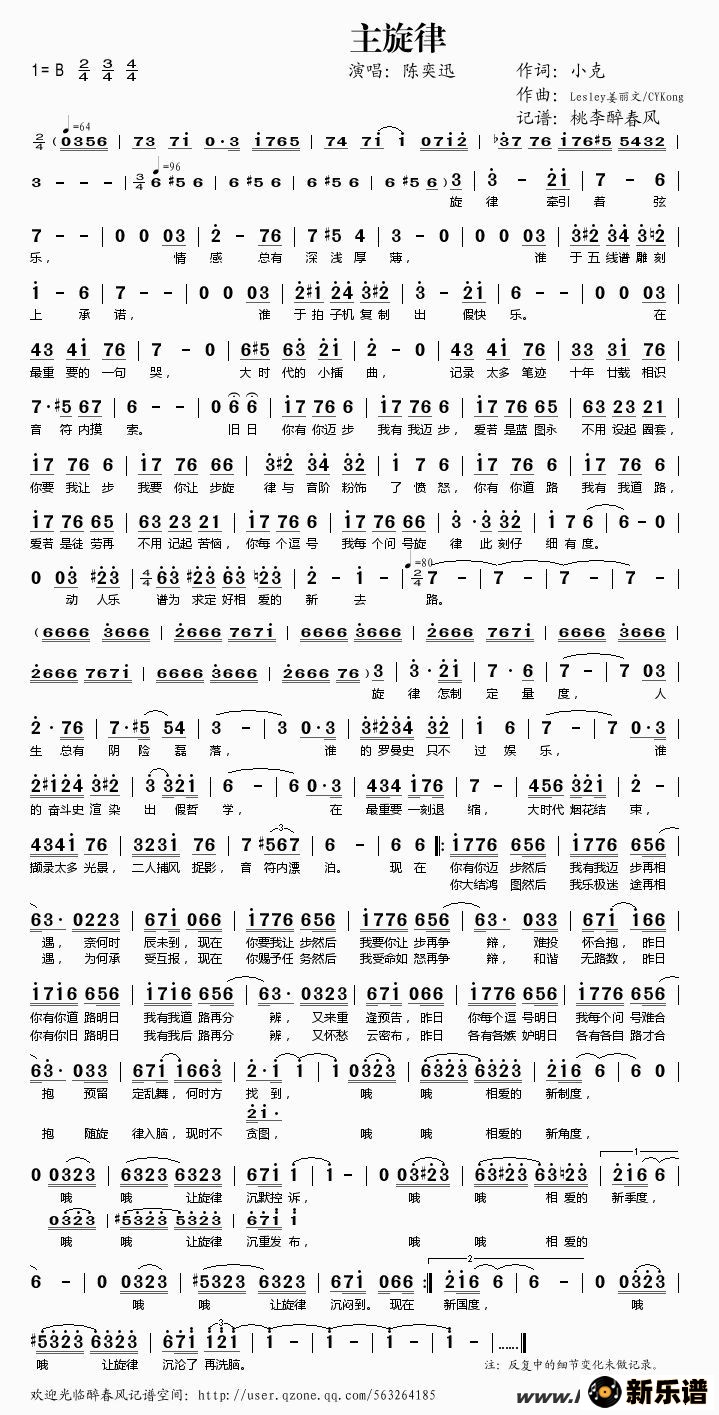 陈奕讯演唱的主旋律歌词,主旋律简谱.
