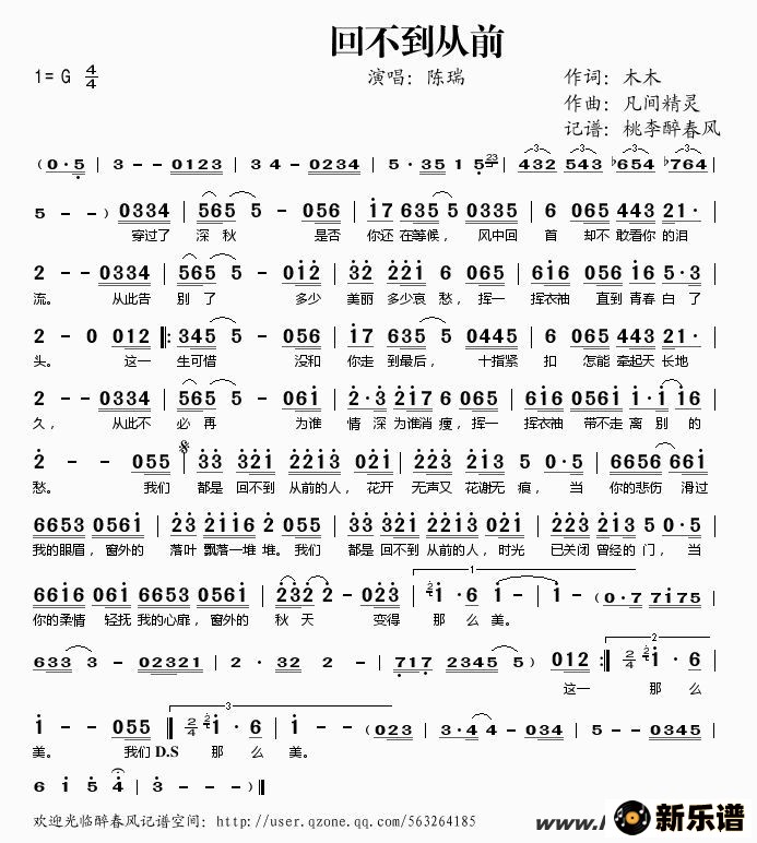 《回不到从前》简谱 陈瑞-桃李醉春风制谱