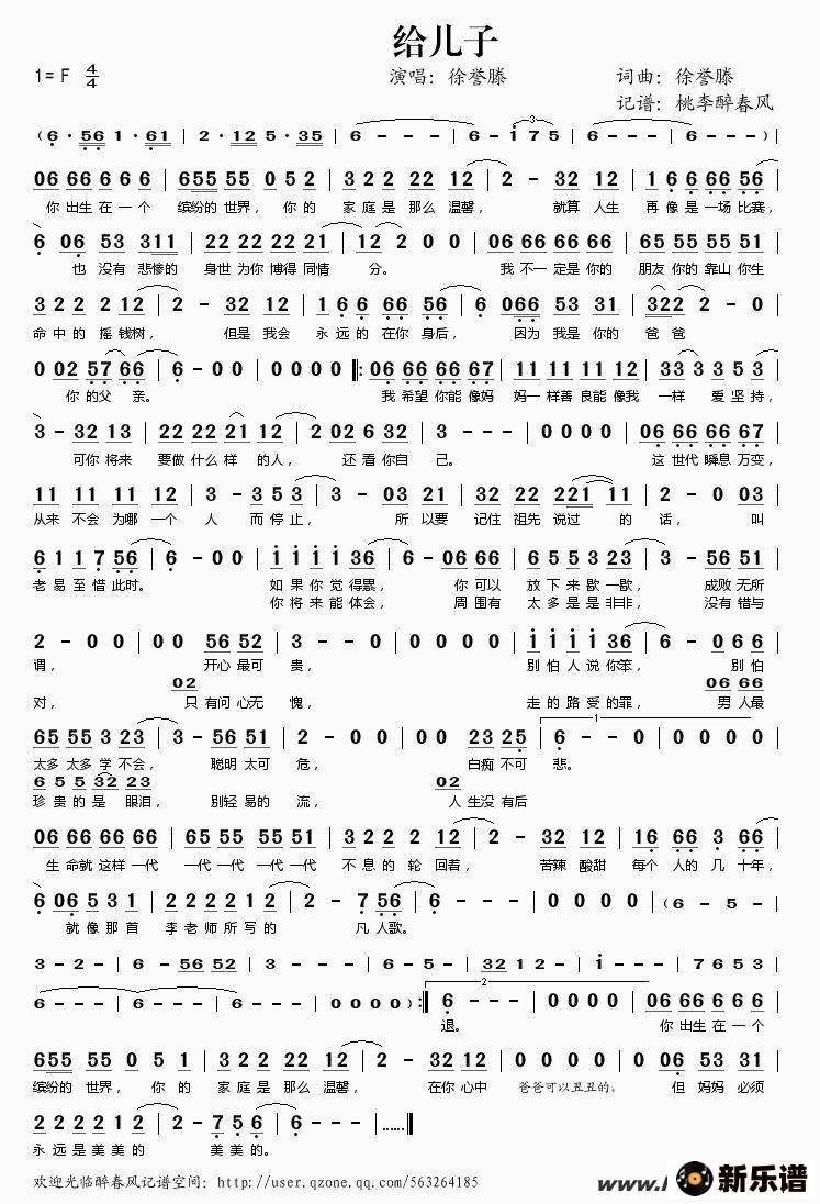 《给儿子》简谱 徐誉滕-桃李醉春风制谱