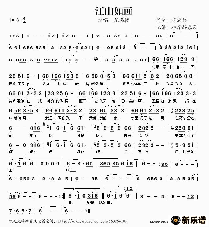 《江山如画》简谱 花满楼-桃李醉春风制谱