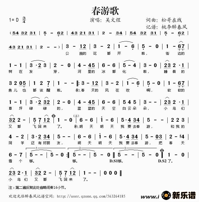 吴文煜演唱的春游歌歌词,春游歌简谱.