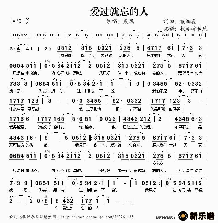 《爱过就忘的人》简谱 晨风-桃李醉春风制谱