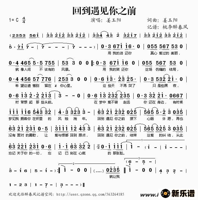 姜玉阳演唱的回到遇见你之前歌词,回到遇见你之前简谱.