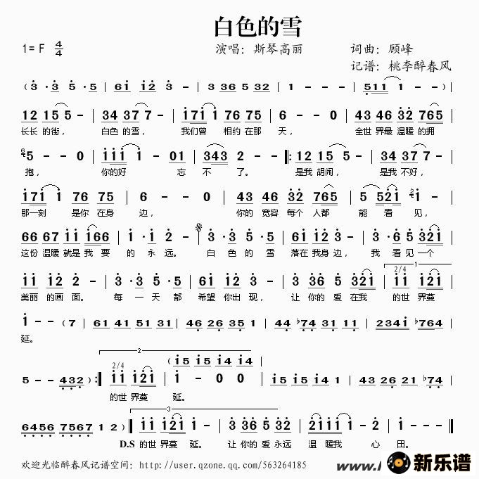 《白色的雪》简谱 斯琴高丽-桃李醉春风制谱