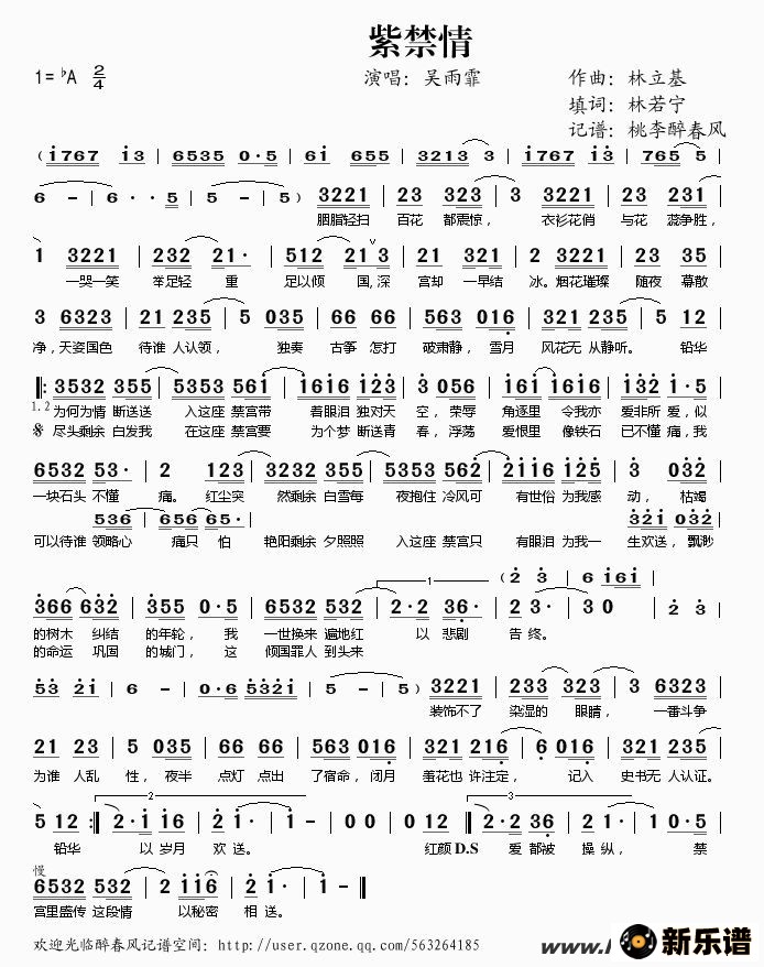吴雨霏演唱的紫禁情歌词,紫禁情简谱.