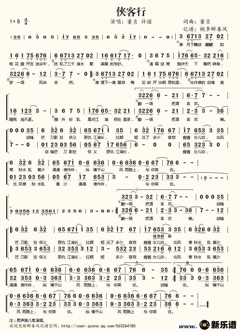 《侠客行》简谱 董贞/许诺-桃李醉春风制谱