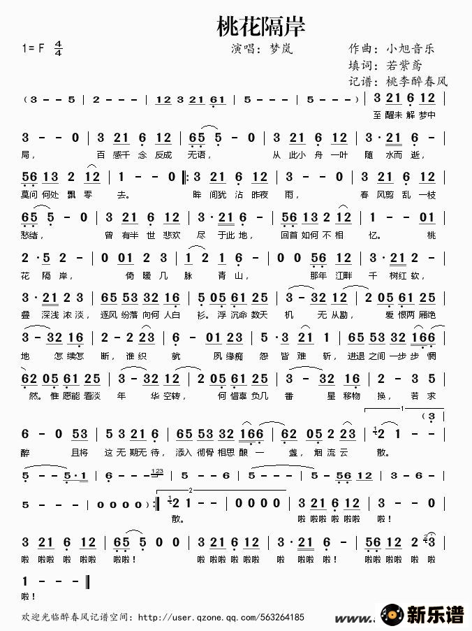 《桃花隔岸》简谱 梦岚-桃李醉春风制谱