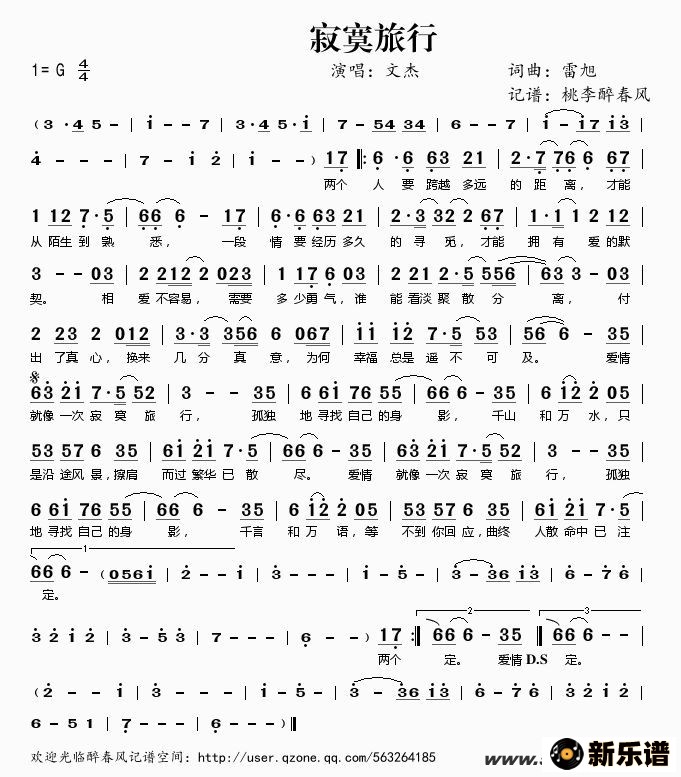 《寂寞旅行》简谱 文杰-桃李醉春风制谱