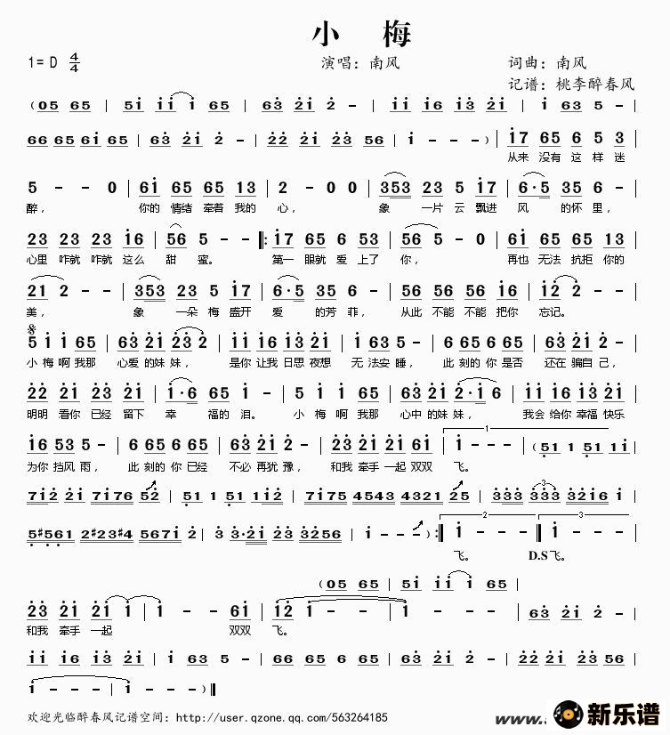 《小梅》简谱 南风-桃李醉春风制谱
