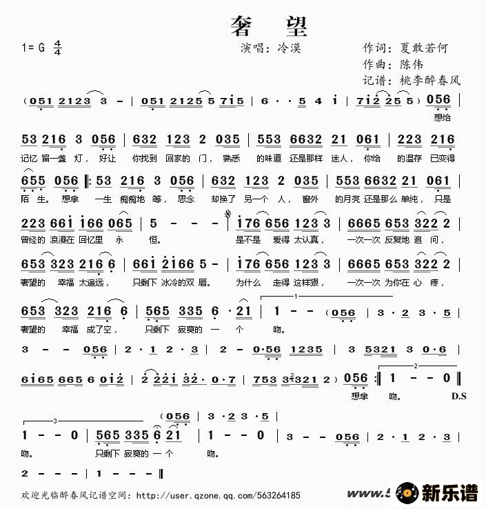 《奢望》简谱 冷漠-桃李醉春风制谱
