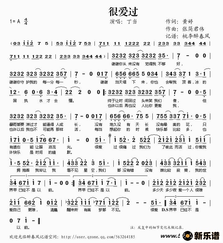 《很爱过》简谱 丁当-桃李醉春风制谱