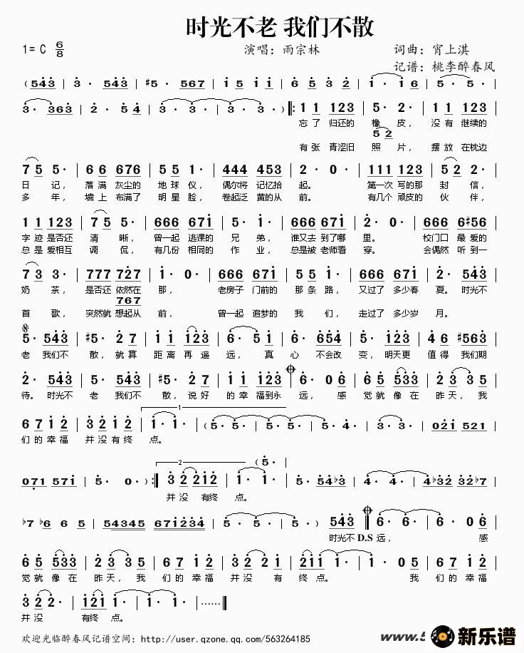 《时光不老 我们不散》简谱 雨宗林-桃李醉春风制谱