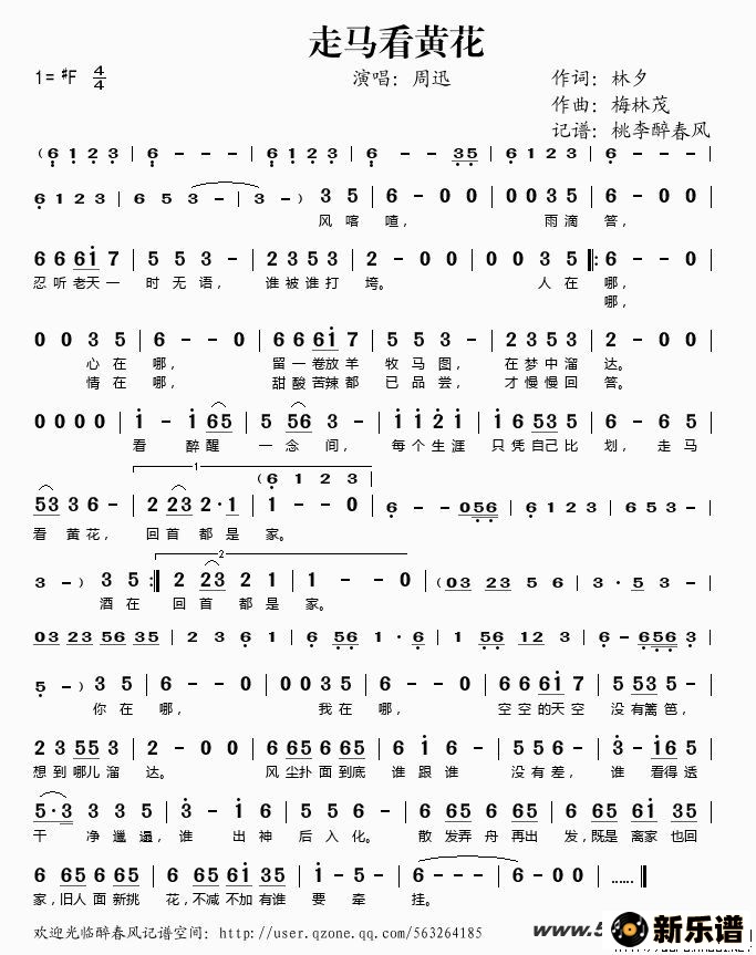 《走马看黄花》简谱 周迅-桃李醉春风制谱