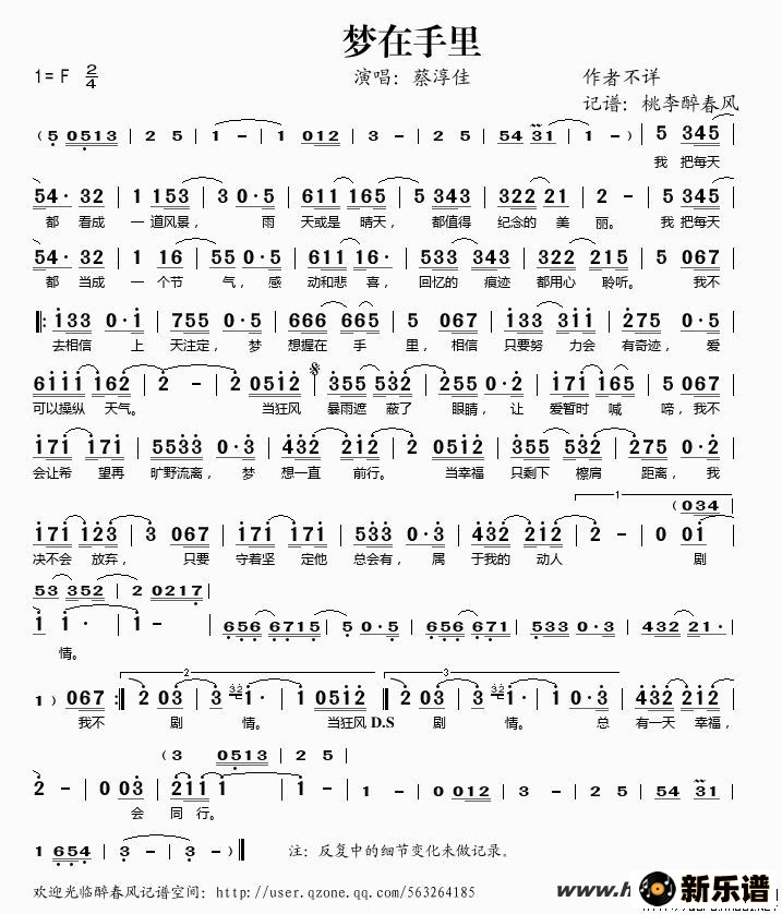 《梦在手里》简谱 蔡淳佳-桃李醉春风制谱