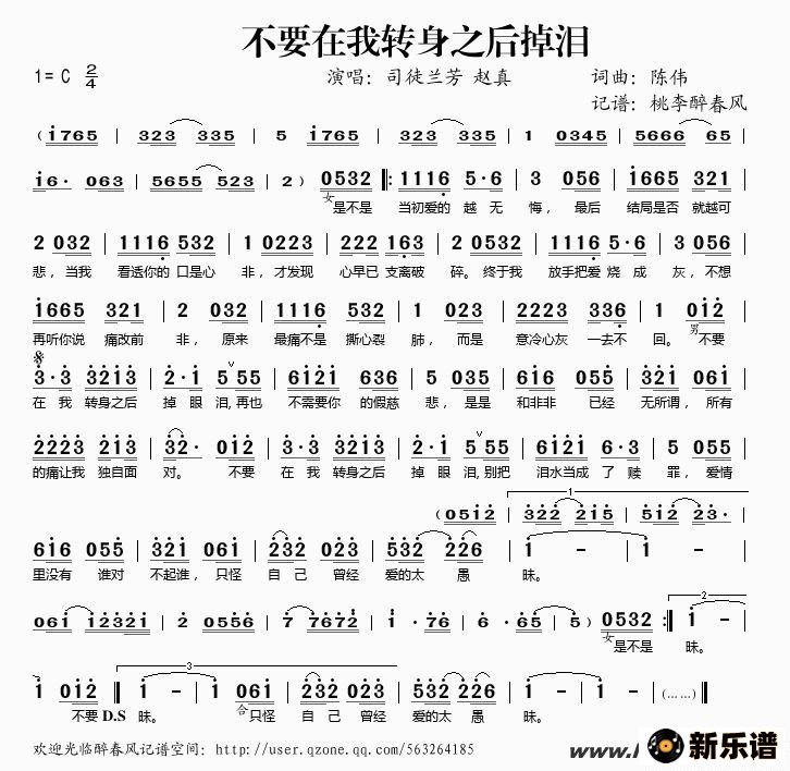 司徒兰芳、赵真演唱的不要在我转身之后掉泪歌词,不要在我转身之后掉泪简谱.