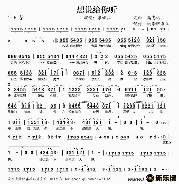 《想说给你听》简谱 张娜拉-桃李醉春风制谱