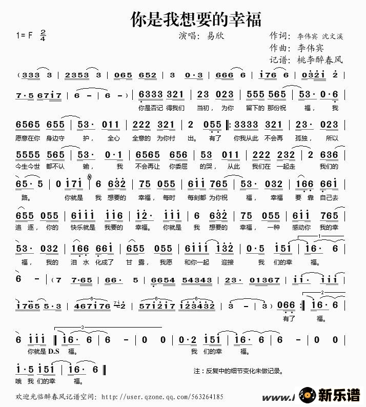 《你是我想要的幸福》简谱 易欣-桃李醉春风制谱