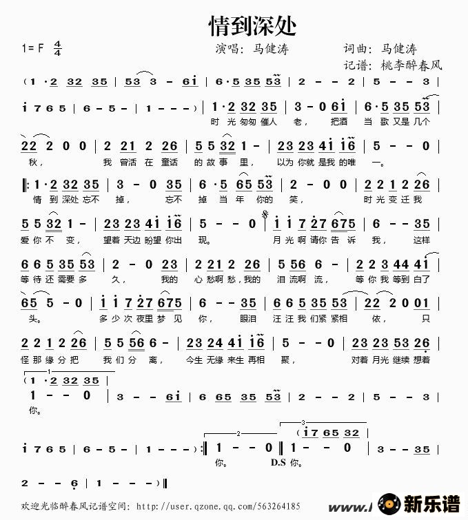 《情到深处》简谱 马健涛-桃李醉春风制谱