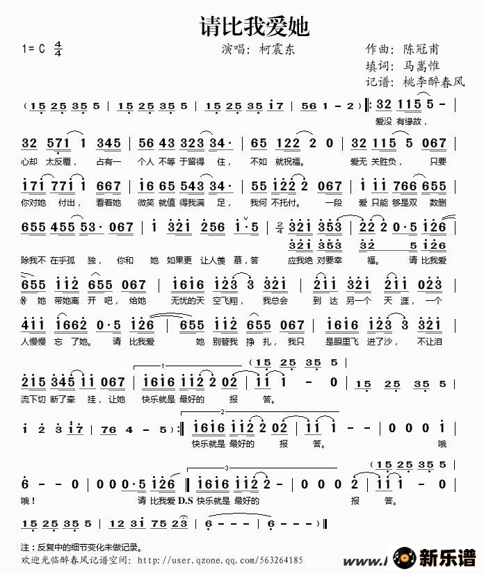 《请比我爱她》简谱 柯震东-桃李醉春风制谱