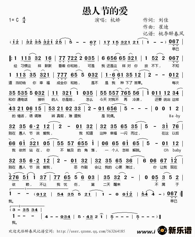 《愚人节的爱》简谱 杭娇-桃李醉春风制谱
